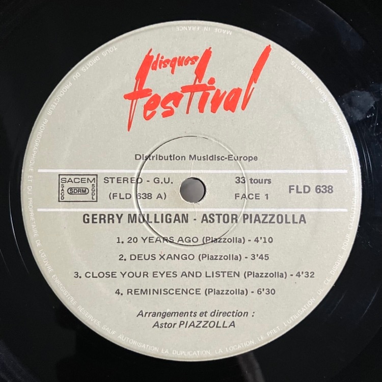ジャケ:EX / 盤質:EX フランス・オリジナル盤。ジャケ見開きに経年シミ、三辺にカスレあり。盤には表面スレ程度で、全体的にまずまずな状態です。 モダン・タンゴの巨匠とバリトンサックスの第一人者による唯一の共演盤。メランコリックにもコンテンポラリーにも振れるマリガンが最高。あんまり見かけません。 グレーディングポリシー