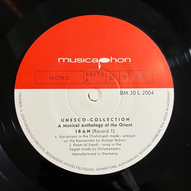 ジャケ:EX+ / 盤質:EX+ オリジナル盤。目立つ痛みなどなくキレイな状態です。 イランの伝統音楽集。伝統楽器だるケマンチェのほか、なかなか聴く機会のない楽器がいい音に収録されています。 グレーディングポリシー