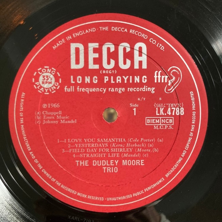 ジャケ:EX / 盤質:EX オリジナル盤。ジャケに経年黄ばみあり。盤に細かいスレ目立ちますがさほど音に影響なく、まずまずキレイな状態です。MONO! イギリスの俳優でありコメディアンであり、と変わった経歴をもつピアニストによる66年作。69年リリースの自身の名前を冠したアルバムが人気ですが、こちらも普通にいいピアノトリオです。 グレーディングポリシー