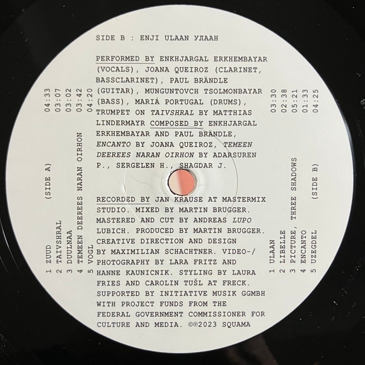 ジャケ:NM / 盤質:EX オリジナル盤。A1のプレスミスで目立たないですが小さくバスドラムを踏むような低音ノイズを数回拾います。 モンゴル出身でドイツのミュンヘン在住のシンガー・ソングライター、エンジによるサードアルバム。前作同様ギタートリオとの演奏を基盤に、ブラジルのクラリネット奏者であるジョアナ・ケイロスも客演。やや前衛的な局面な楽曲も交えながら、素朴で哀愁を携える歌声が導く繊細な作品。 グレーディングポリシー