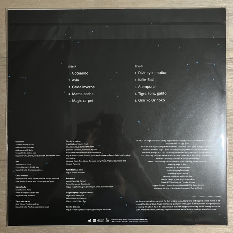ジャケ:NM / 盤質:NM オリジナル盤。キレイな状態です。 スペイン出身の打楽器奏者による21年リリースのデビュー作。「手に触れるあらゆるものからパーカッシブな音色を作り出す」って触れ込み通り、ドラムやカリンバ、なんなら水を叩く音までをメロディアスに奏でるだけでなく、まさに現代ジャズ!な楽曲からミニマルミュージック、自身のルーツを昇華したような楽曲まで作曲家としても素晴らしさ魅せつつ、編成違うそれぞれの楽曲をドラマティックに繋いだ意欲作!おすすめ! グレーディングポリシー