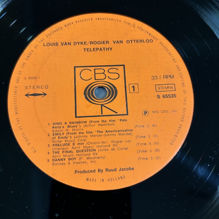 ジャケ:EX+ / 盤質:EX+ オランダ・オリジナル盤。目立つ痛みなどなくキレイな状態です。 オランダを代表する人気ジャズシンガーのアン・バートンの初期作で伴奏を務めたことで知られるピアニストによるオケとのコラボ作。ぎりぎりイージーリスニングにならないくらいには甘美な旋律が最高にいいです。 グレーディングポリシー