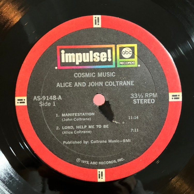 ジャケ:EX- / 盤質:EX 赤リムラベルのUS盤。ジャケ見開きに経年シミある程度で、全体的にまずまずな状態です。 コルトレーンの死後、アリスがさらに手を加えて自主レーベルからリリースさらた作品の流通盤。たいとる通りスピリチュアルでコズミックな作品。 グレーディングポリシー